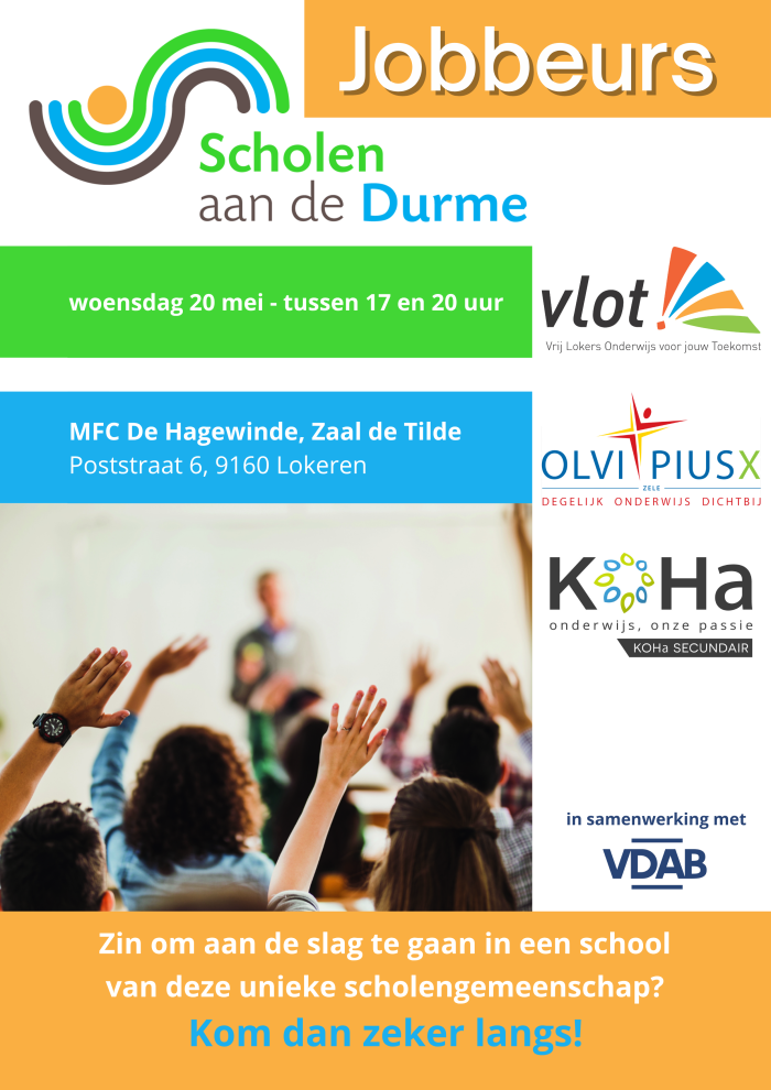 Heb je zin om aan de slag te gaan in één van de scholen van onze fantastische scholengemeenschap? Kom dan zeker langs op onze jobbeurs. Vooraf inschrijven is niet nodig.