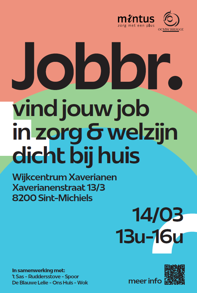 Ben je benieuwd naar wat er in zorg en welzijn in Brugge te doen is? Of wil je gewoon eens kennismaken met de verschillende werkplekken in je eigen regio? Kom dan naar JOBBR op 14 maart, van 13u tot 16u!