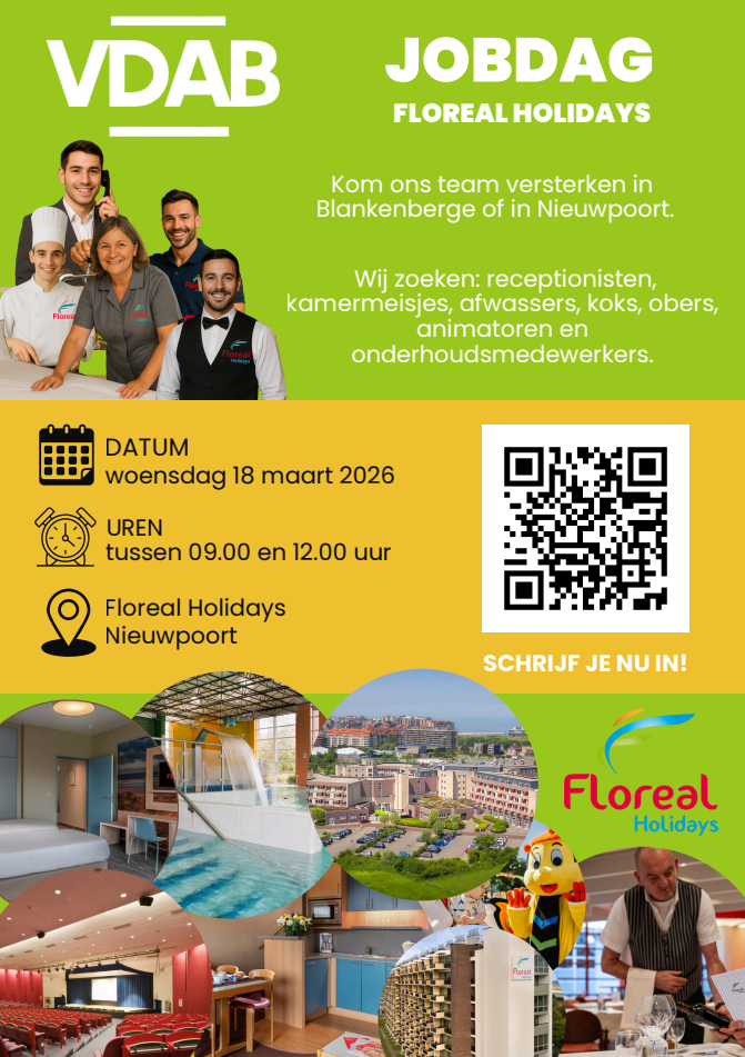 Floreal Holidays biedt heel wat carrièremogelijkheden binnen zijn verschillende vakantiedorpen en campings in België. Specifiek voor alle vacatures in ons vakantiedomein in Nieuwpoort organiseren we een jobdag.