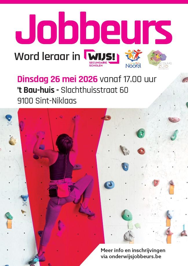 Scholengemeenschappen WIJS! (secundair onderwijs) en Sint-Nicolaas Noord en Zuid (basisonderwijs) organiseren samen een informatieve jobbeurs voor iedereen die geïnteresseerd is in een job in het onderwijs in Sint-Niklaas en de aangrenzende gemeenten.