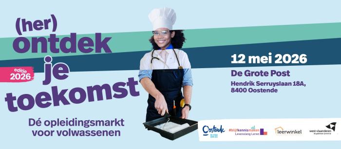 Deze opleidingsbeurs is een initiatief van de Provincie West-Vlaanderen, Leerwinkel West-Vlaanderen, Stad Oostende en het West-Vlaams partnerschap Levenslang Leren.