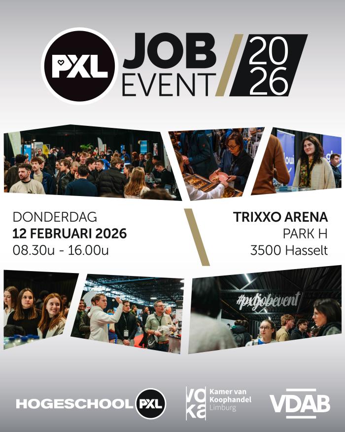 Op donderdag 12 februari organiseren Hogeschool PXL, VDAB en VOKA Limburg een jobevent. In de voormiddag, vanaf 08.30u tot 11.30u, kunnen werkzoekenden uit de regio langskomen en solliciteren bij de +-200 standhouders. De namiddag is gereserveerd voor de studenten van Hogeschool PXL.