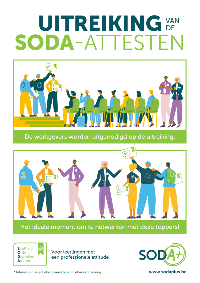 Tijdens de uitreiking zie je meteen welke leerlingen een SODA-attest behalen: een sterke indicator van betrouwbaarheid en werkhouding.