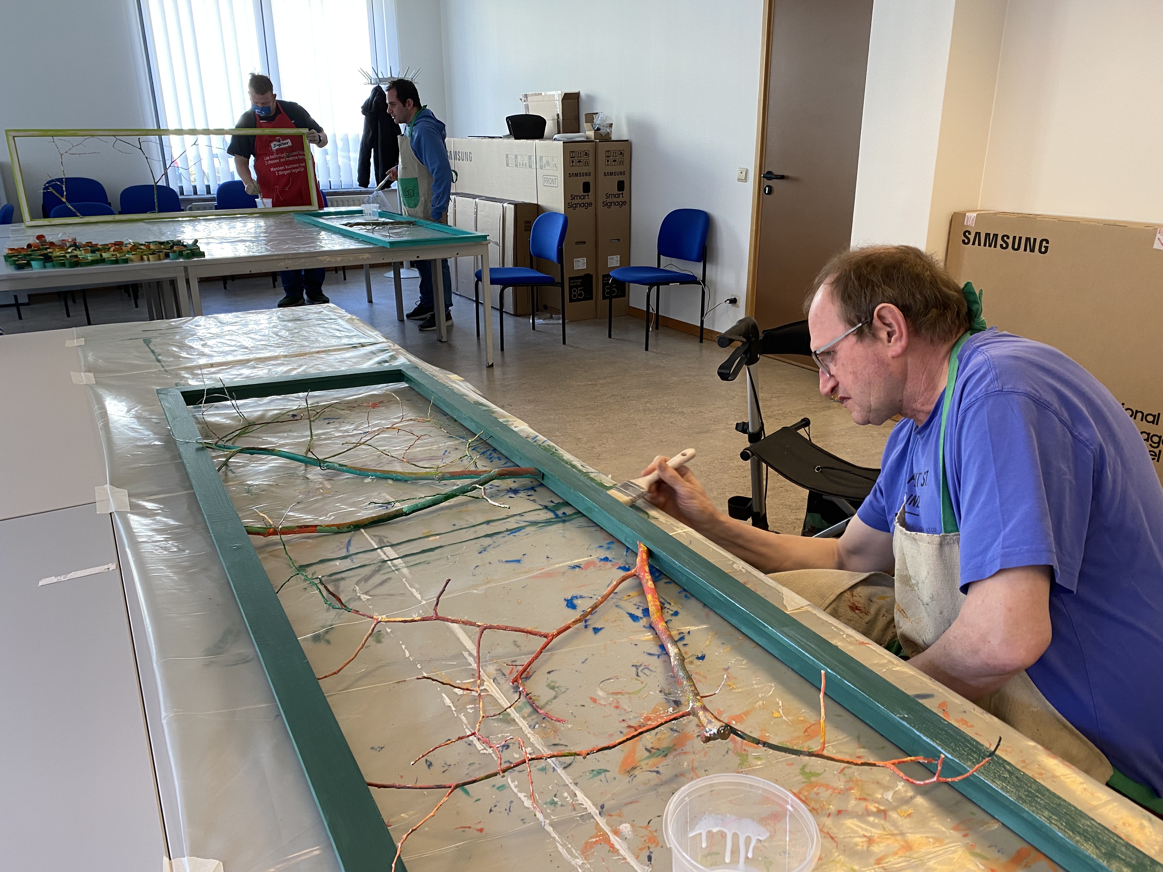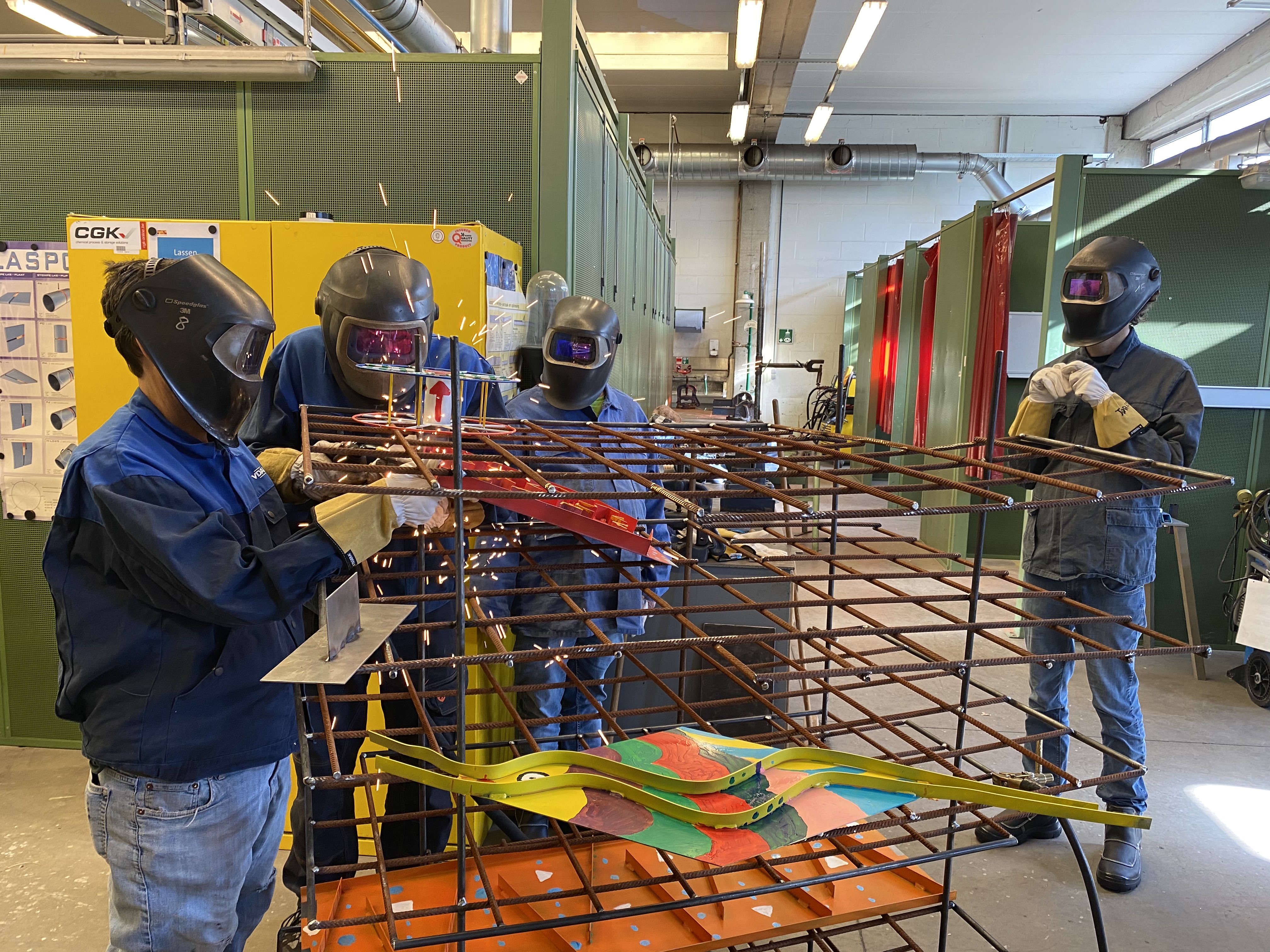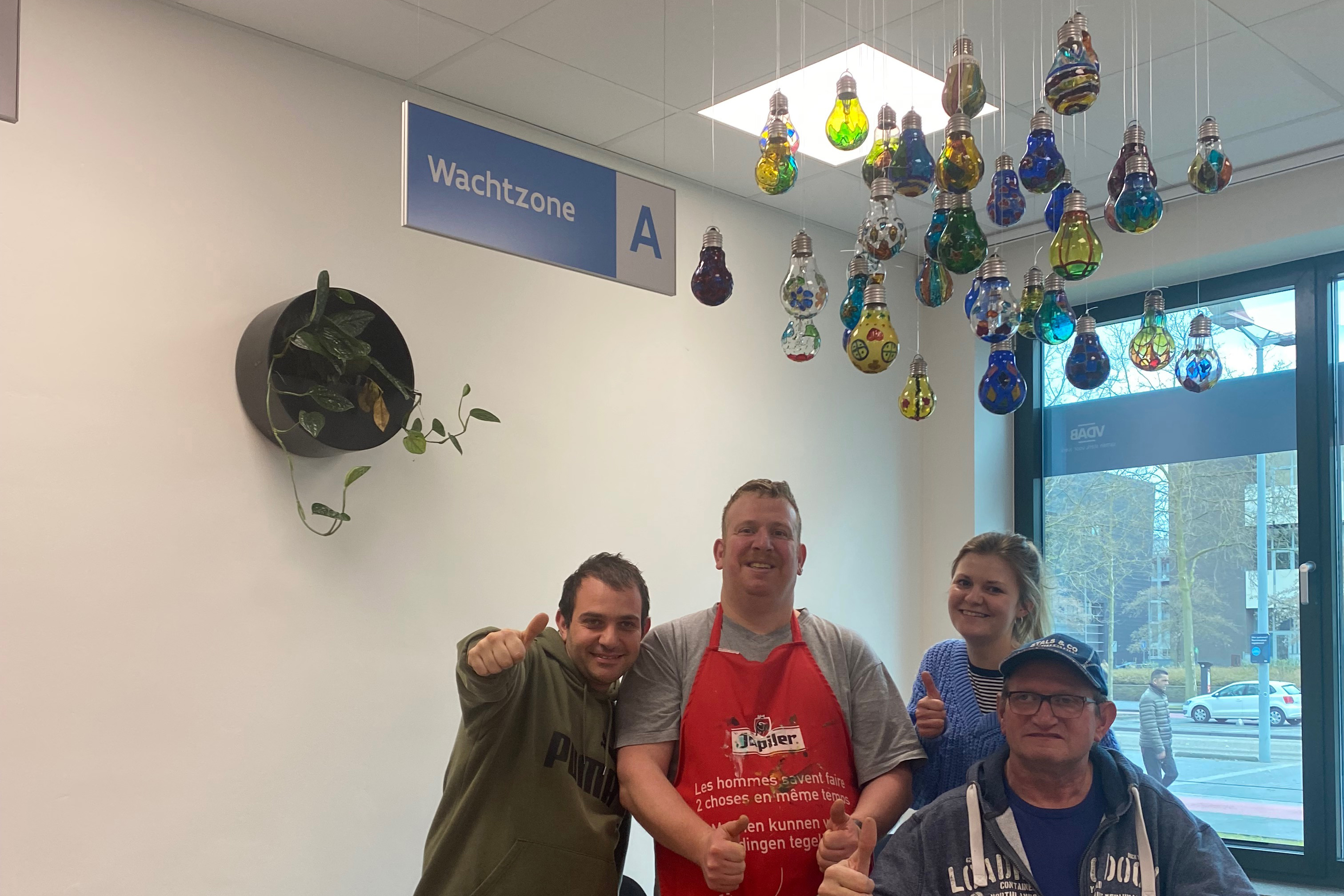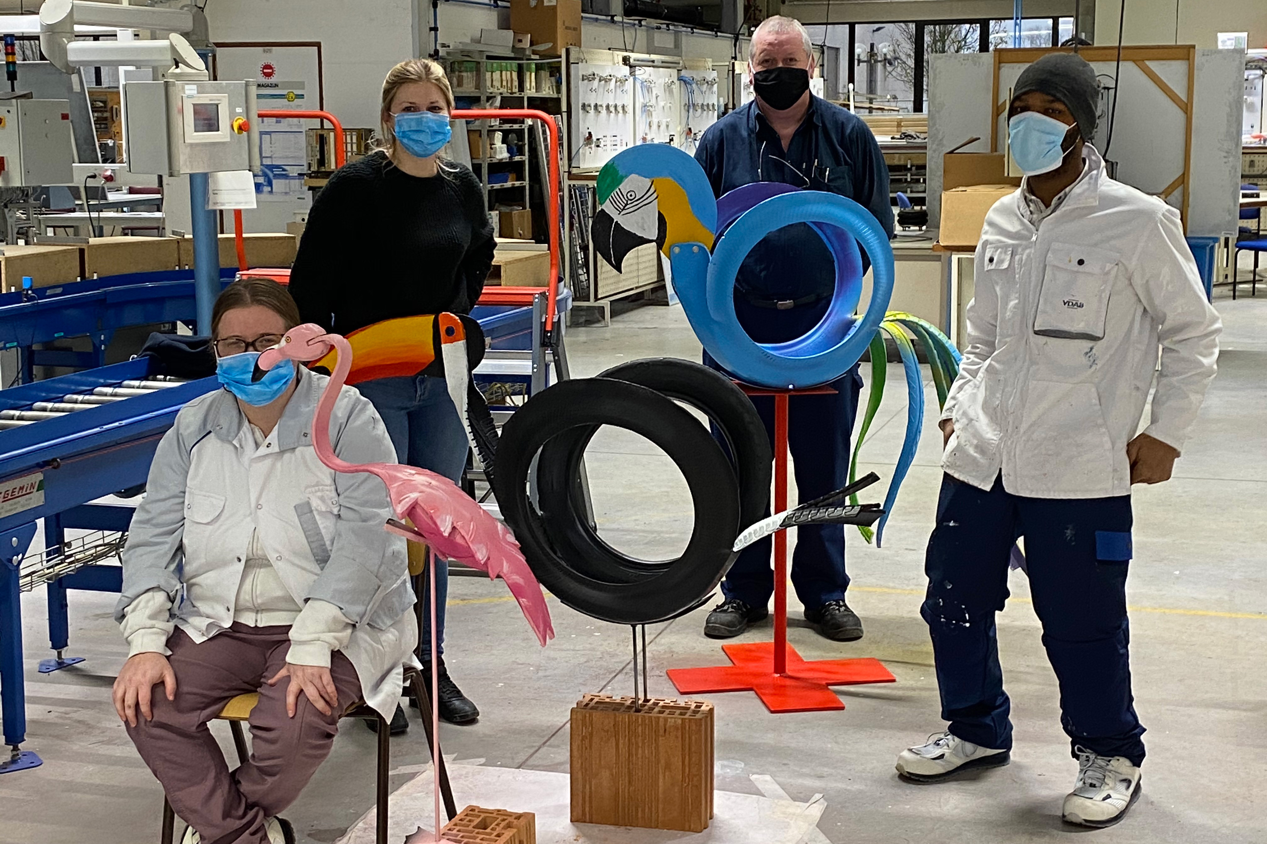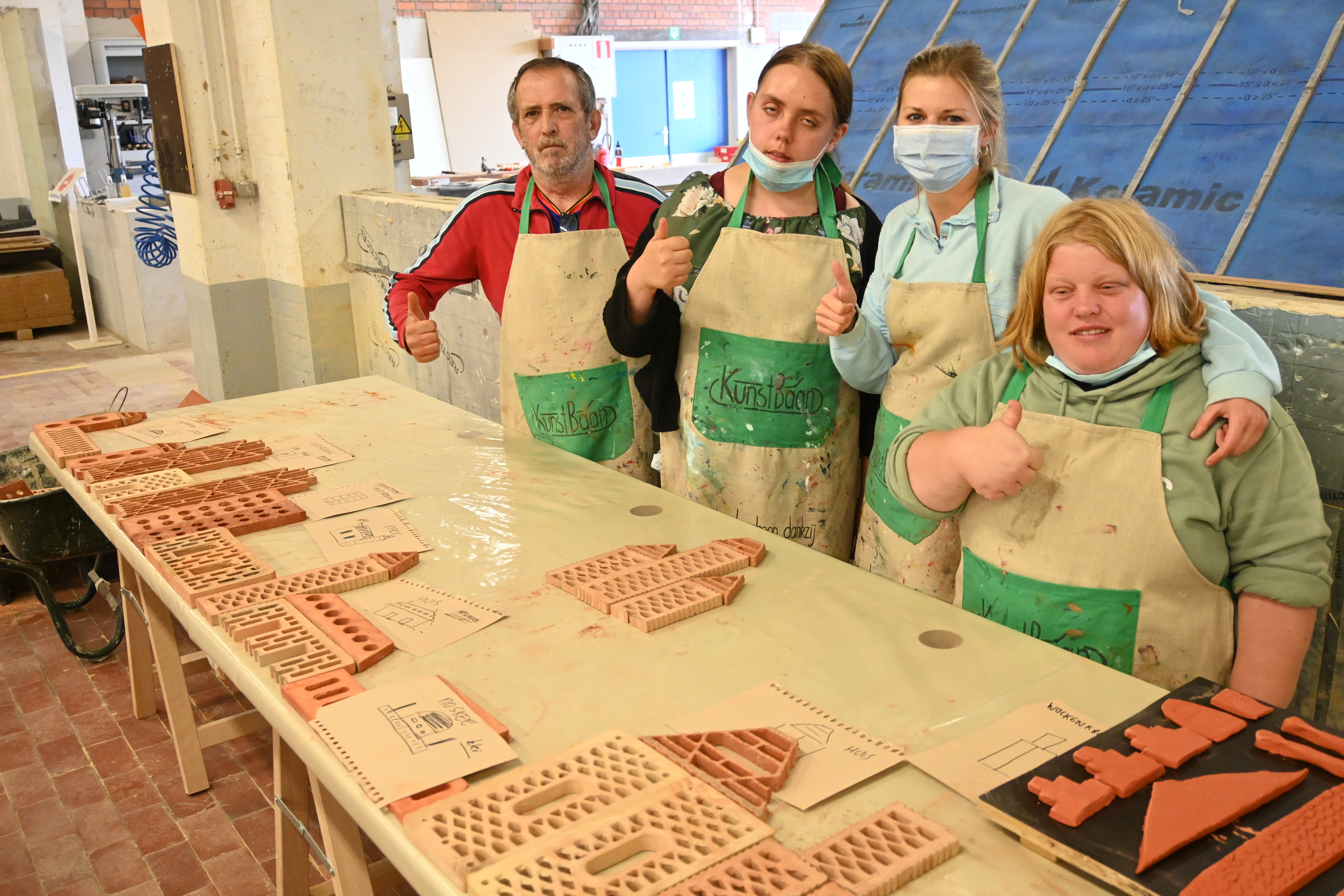Onder begeleiding van Laura van Wingen van vzw KunstBaan maakten Gert Vercauteren (CAD De Boei), Chantal De Leener (Ter Linde, MPC Sint-Franciscus) en Michaël Coomans (Hubbie) 3 bijzondere kunstwerken voor het opleidingscentrum in Anderlecht.