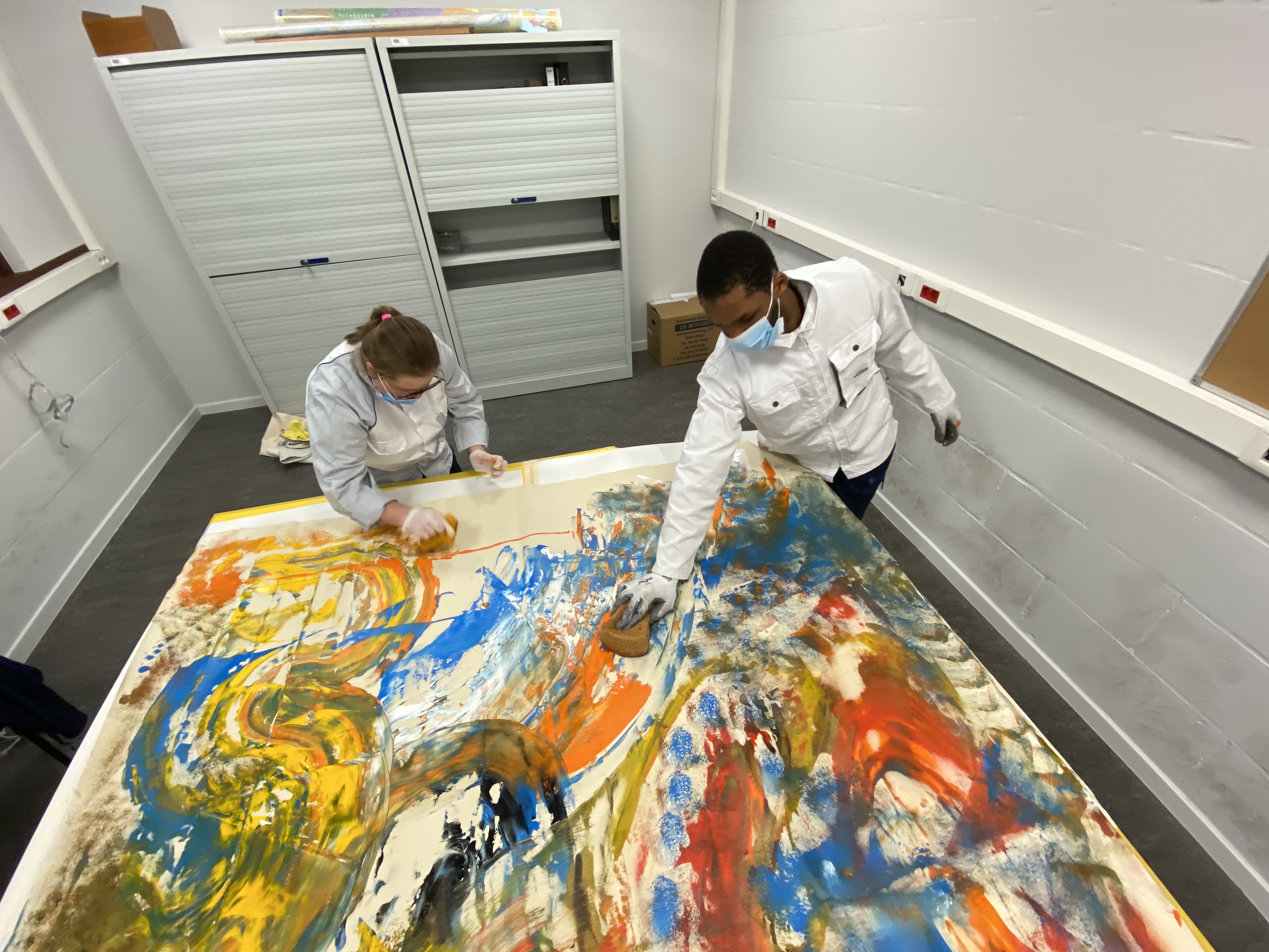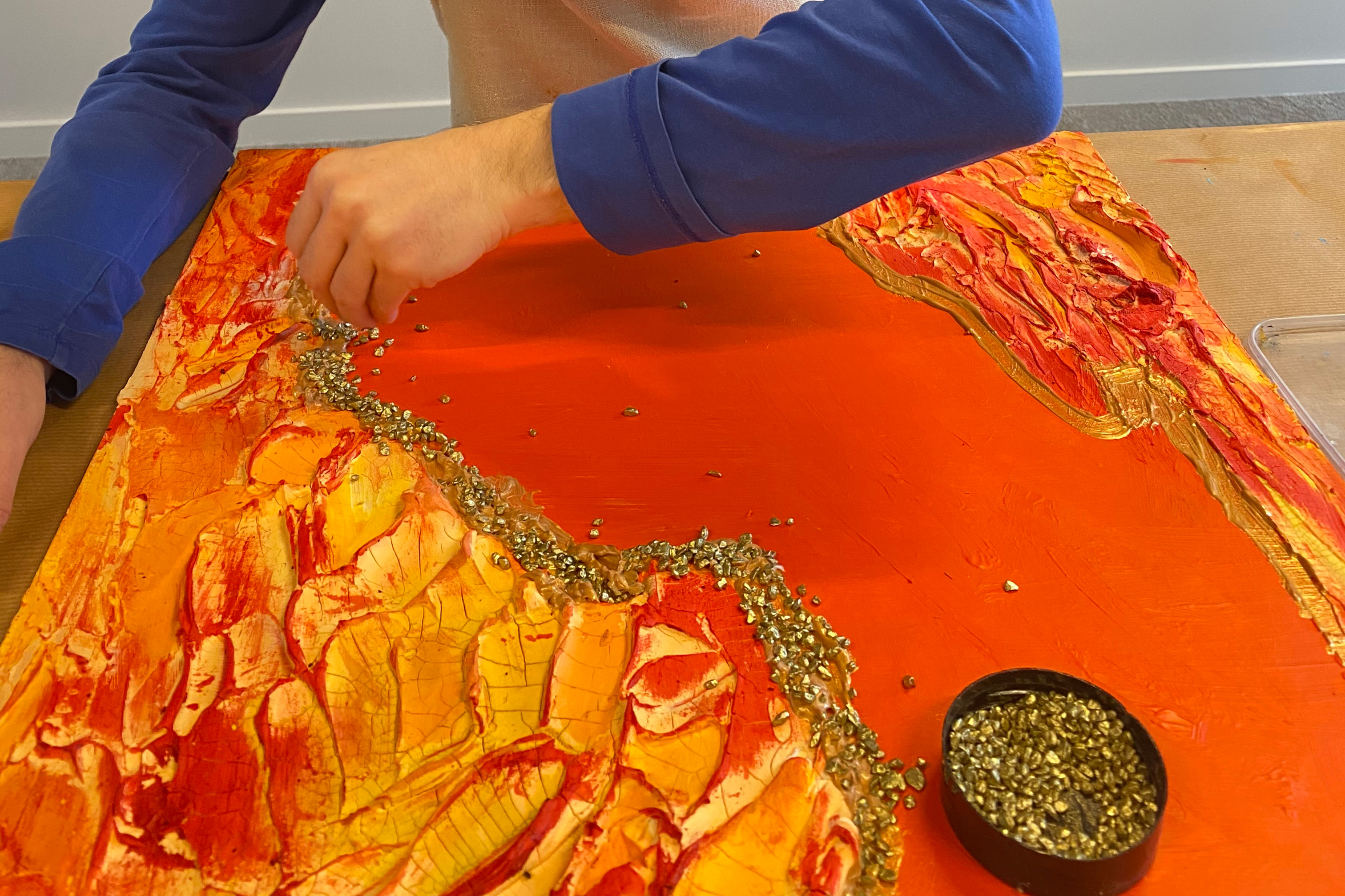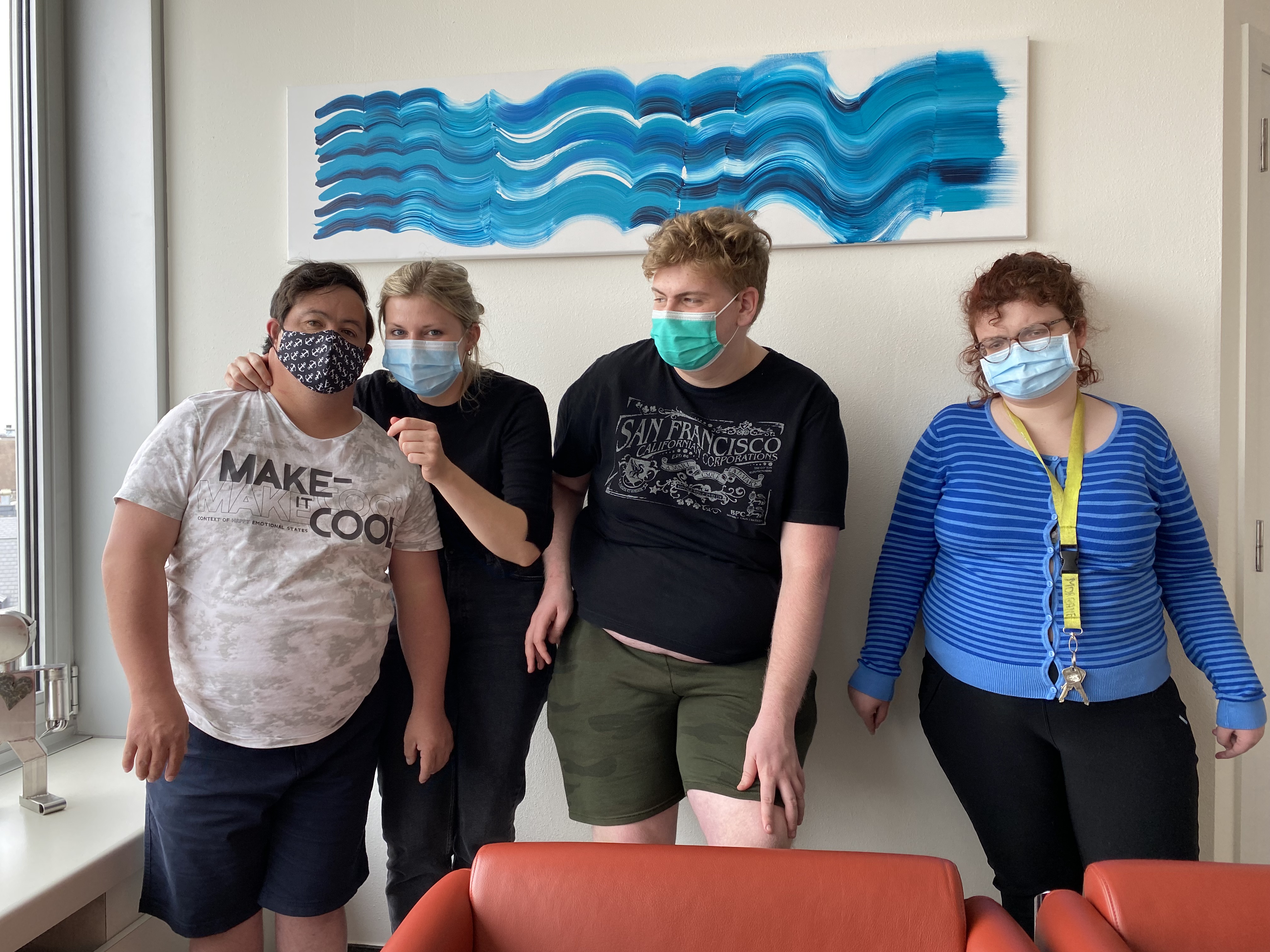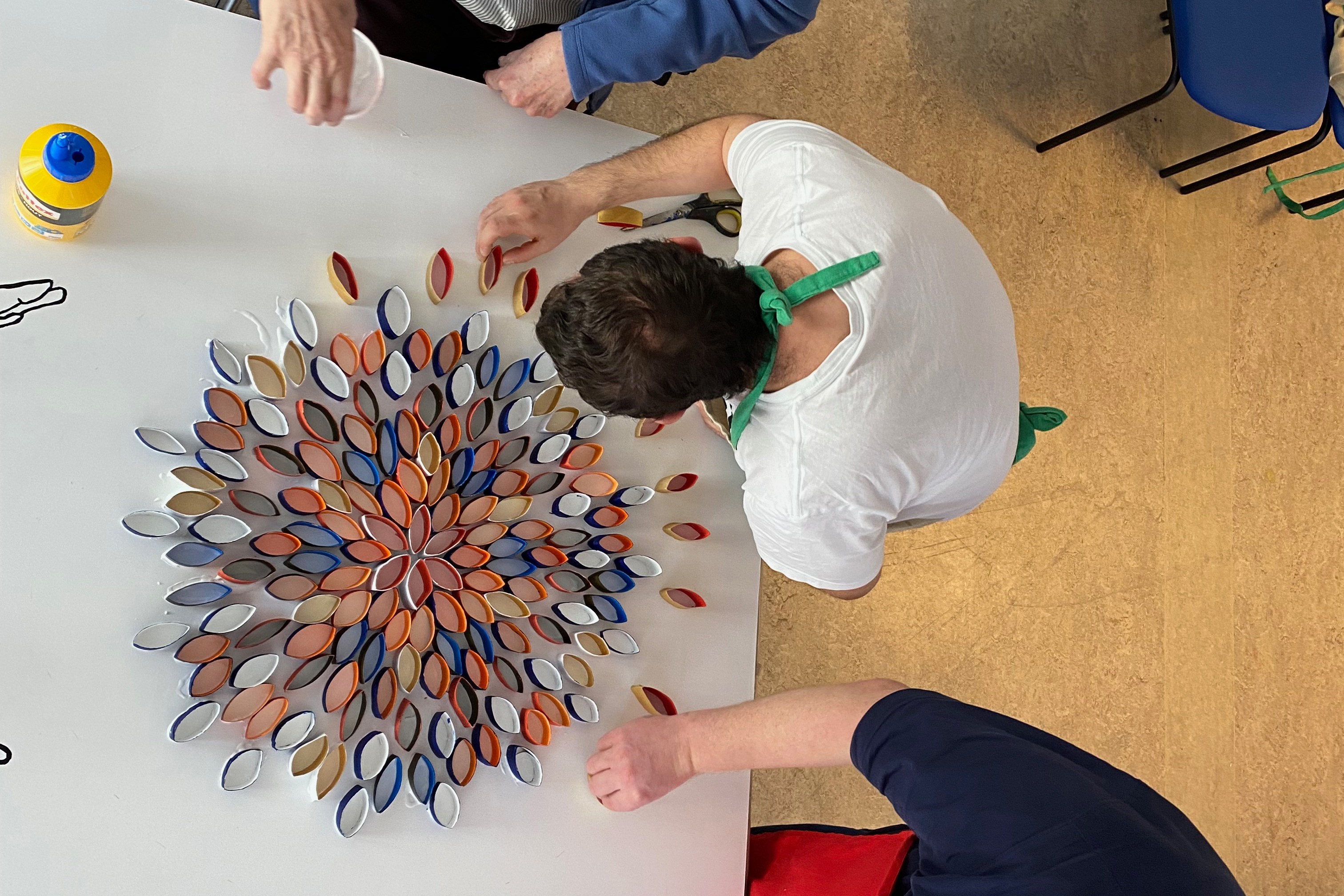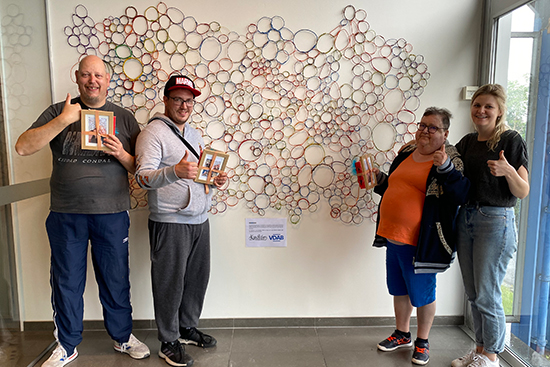 Onder begeleiding van Laura van Wingen van vzw KunstBaan maakten Gert Vercauteren (CAD De Boei), Chantal De Leener (Ter Linde, MPC Sint-Franciscus) en Michaël Coomans (Hubbie) 3 bijzondere kunstwerken voor het opleidingscentrum in Anderlecht.