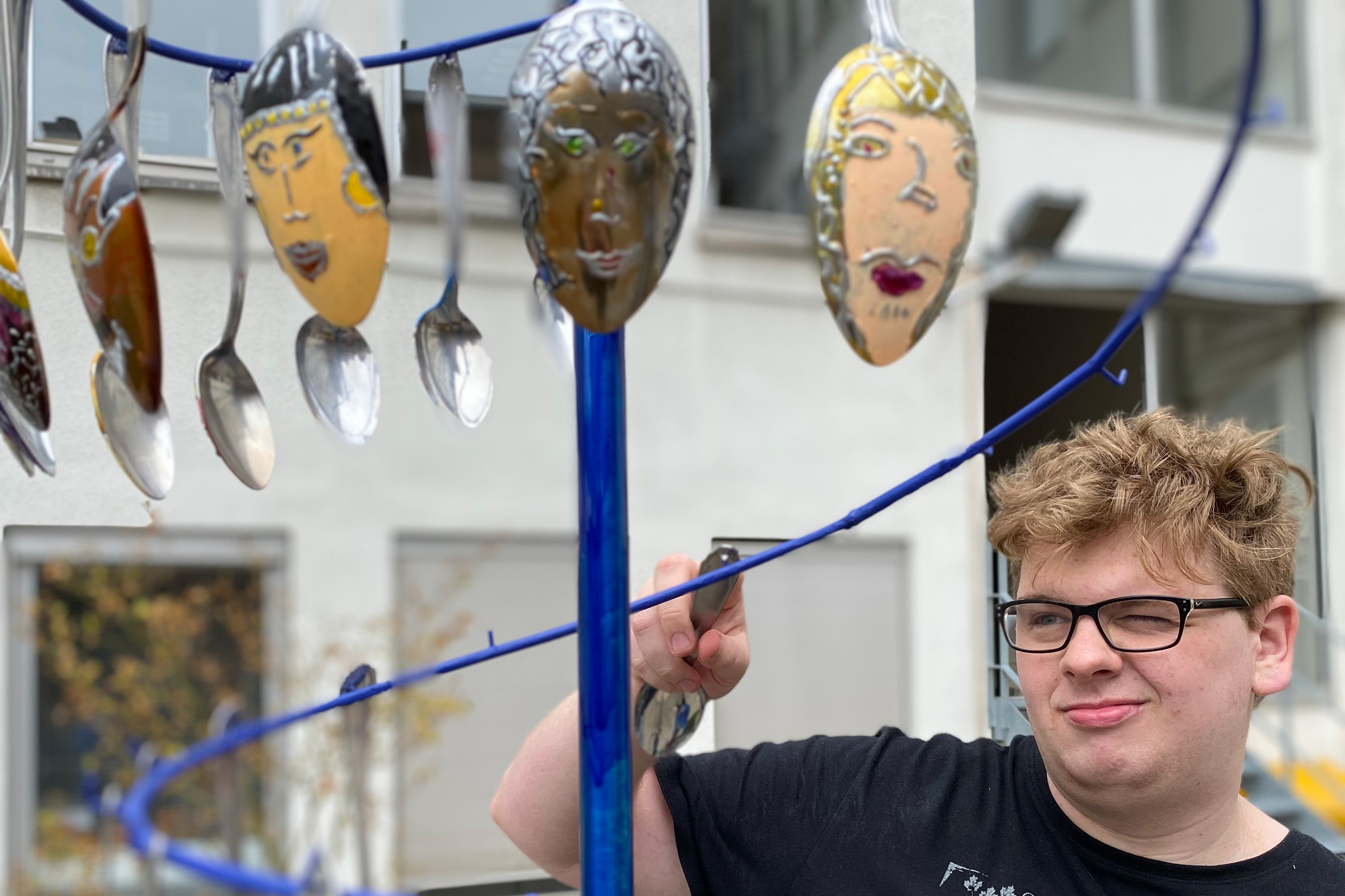 In Wondelgem ontdek je de kunstwerken van Xeverine Coucquyt en Mohamed Jalloh Muctar, 2 creatievelingen uit zorgvoorziening Obra Braken in Evergem. Ze gingen enthousiast aan de slag onder begeleiding van Laura Van Wingen van vzw KunstBaan.